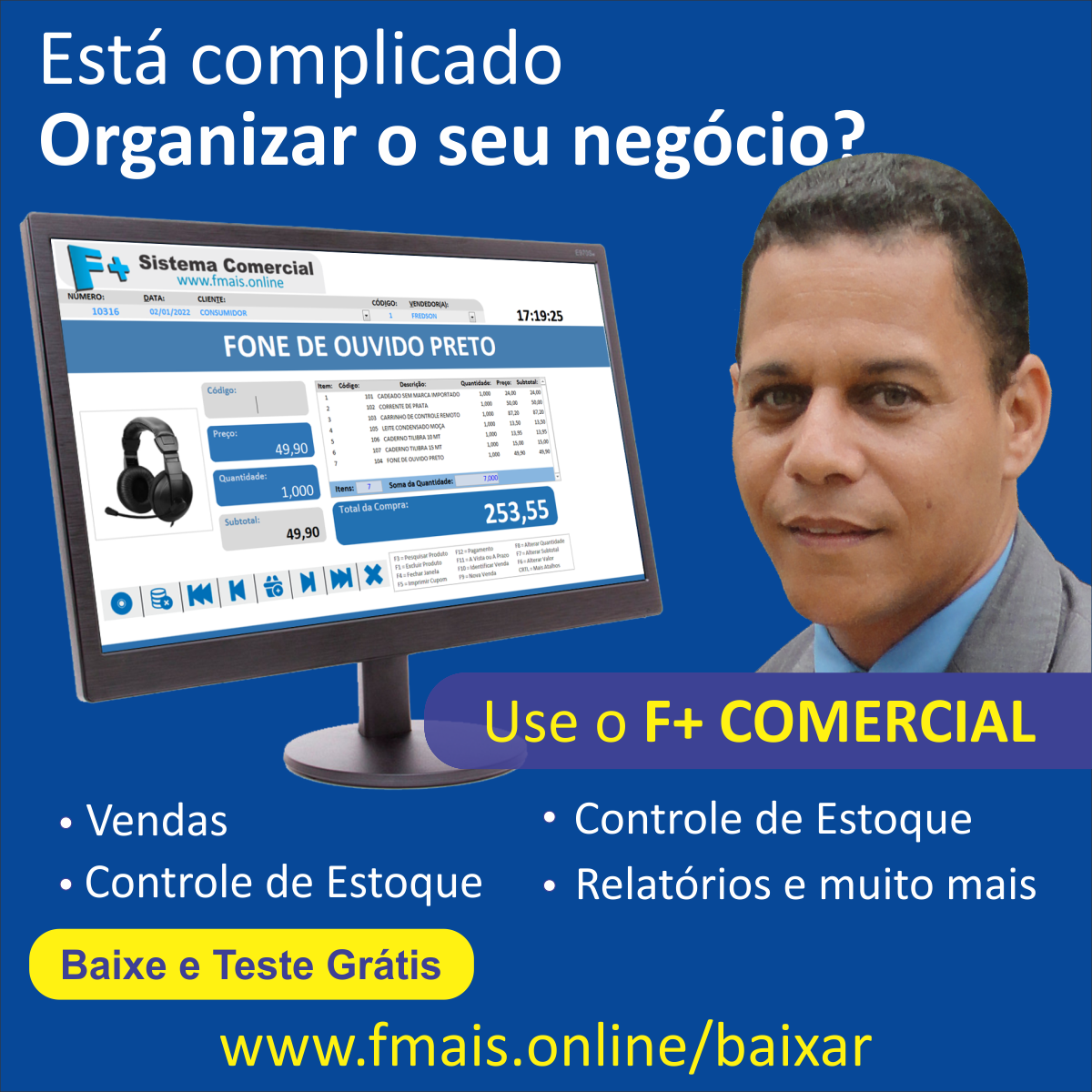 Após Salvar a Imagem (Saiba Como), você deverá alterar o Endereço: www.fmais.online/baixar. Será preciso incluir o seu CI (Código de Indicação) como mostrado na Página de Parceria.
